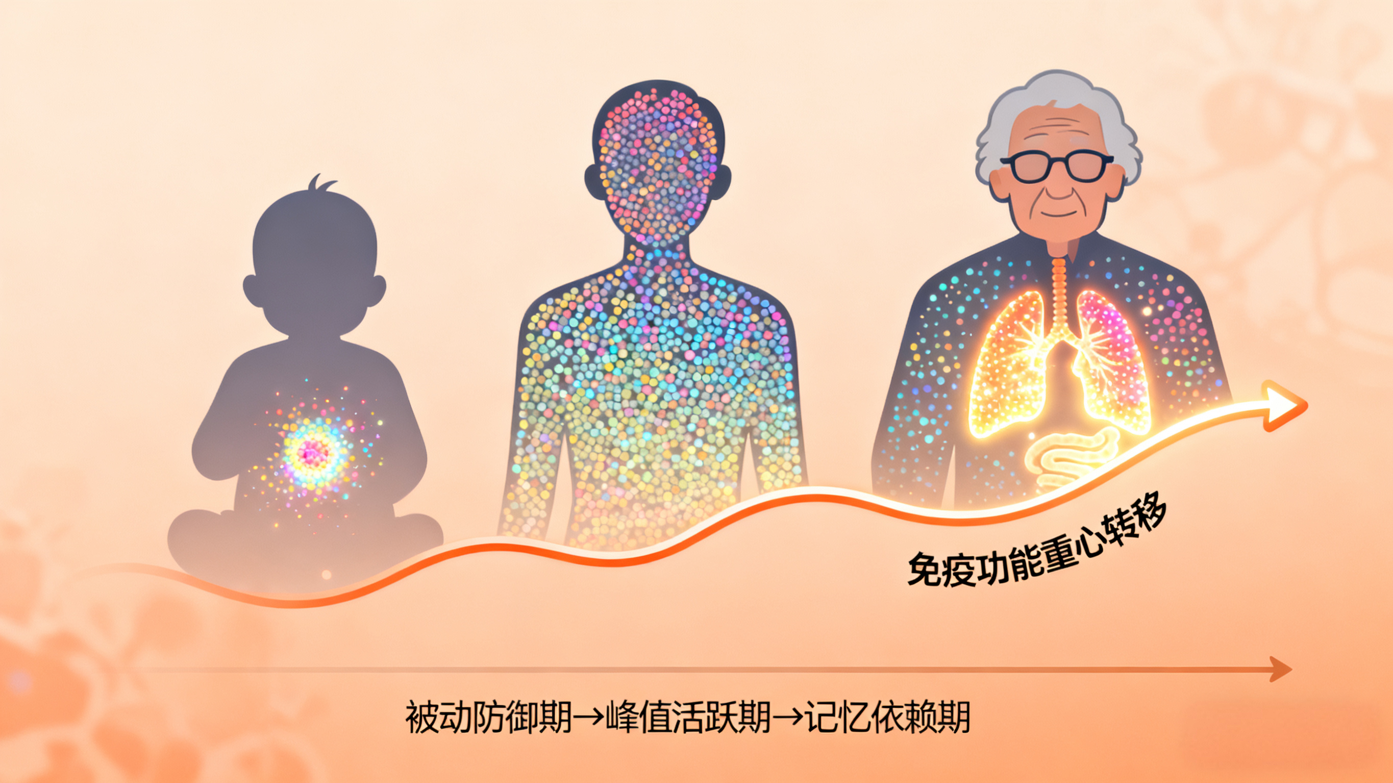 年龄则是改写这份 “先天剧本” 的第一支笔,但它并非单向的 “衰退曲线”。婴幼儿期免疫系统尚未发育成熟,是 “被动防御期”,依赖母体抗体与后天逐步建立的免疫记忆,此时的脆弱性是生理发育的必然;青年期免疫系统达到峰值,却也容易因免疫过盛引发自身免疫性问题,比如莫名的皮疹、关节酸痛;中老年期免疫细胞更新速度放缓,防御能力下降,但长期积累的免疫记忆又能对已知病原体形成更精准的打击 —— 年龄带来的不是免疫力的 “衰退”,而是 “功能重心的转移”,这种动态变化,让任何 “普适性的免疫建议” 都显得片面。