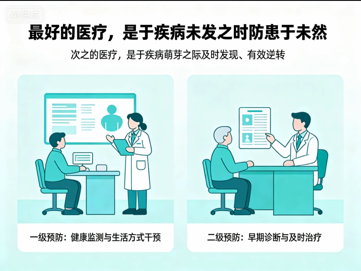 最好的医疗是在疾病之前阻止它;次之的医疗是在疾病萌芽时发现它,逆转它;再次之的医疗是在疾病严重时救治它...但难度一级比一级大!您觉得呢?