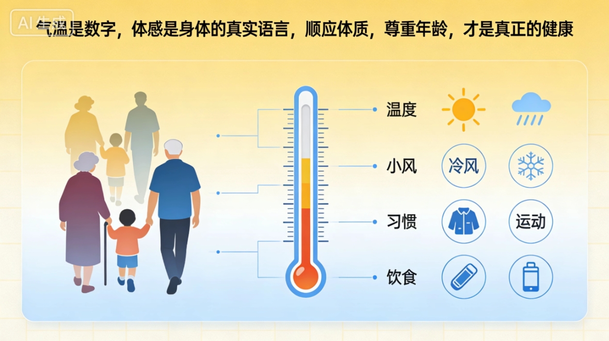 同样是 20℃,夏天觉得微凉舒适,秋冬却觉得阴冷刺骨;同样是冬日 3℃、4℃的气温,年轻人单衣薄裤不觉冷,中老年人裹上厚保暖裤仍觉寒风刺骨。生活里最常见的温度数字,从来不是衡量冷暖与健康的唯一标准,体感温度的差异,藏着环境、年龄、身体状态与生活习惯的多重密码。