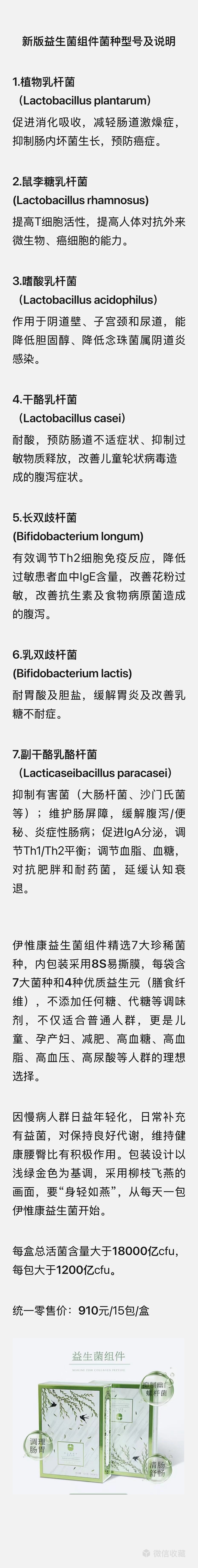 伊惟康益生菌组件的建议吃法:撕开8S易撕膜内包装,倒在嘴里,小口慢咽,小心别呛着(小时候干吃麦乳精那样)。如果粘牙就喝口温水咽下去;如果泡水喝,温度不超过40度。伊惟康益生菌组件精选六大稀有菌种和五种优质膳食纤维,不含任何糖、代糖、果酱、果汁浓缩等调味剂,不仅适合普通人群,更是儿童、孕产妇、减肥、高血糖、高血脂、高血压、高尿酸等特殊人群的理想选择。揭秘益生菌如何改善睡眠质量:🌿益生菌与睡眠的最新研究揭秘