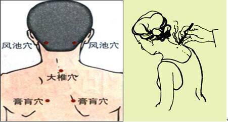 在专业医生指导操作下,取风池、风府、天柱、肩井等穴位针刺或艾灸,每天20-30分钟;或穴位按揉、推拿3-5分钟。