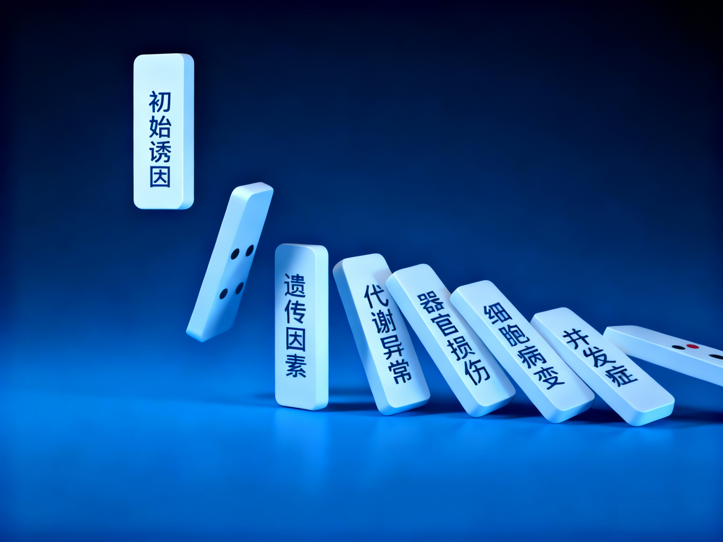 在疾病的发展进程中,“诱因” 往往扮演着 “第一张多米诺骨牌” 的角色,但其危害并不会始终停留在初始阶段,而是会随着病理进程的推进发生 “转移”。正如感冒这一常见诱因:初期仅表现为鼻塞、流涕的上呼吸道症状,但若身体防御能力不足,病毒可能向下呼吸道蔓延,引发肺炎;极端情况下,还可能诱发心肌炎、脑炎等严重并发症。此时,尽管感冒是一切病理反应的起点,但当患者因严重肺炎或心肌炎危及生命时,医学表述中的 “直接致命因素” 已不再是感冒,而是其引发的器官功能衰竭。