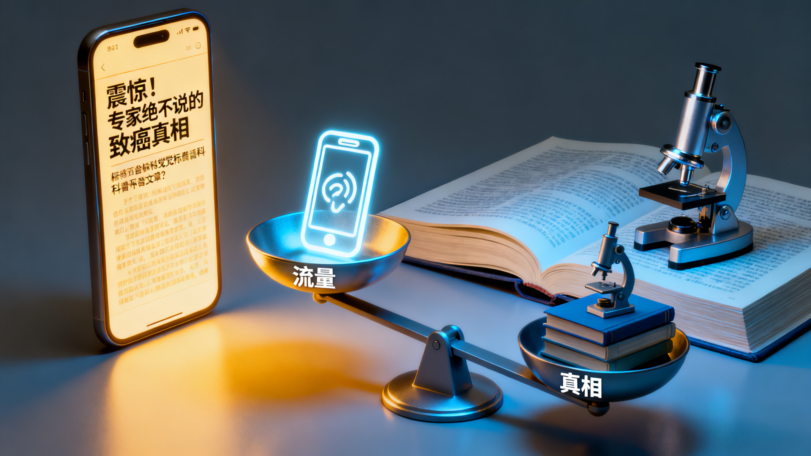 而自媒体崛起后,科普彻底进入 “流量竞争” 时代。传播效率成为核心指标,“标题化、争议式” 的内容生产模式被验证为 “流量捷径”:标题必须足够夸张,“震惊!这种常见食物竟是致癌元凶”“医生绝不会告诉你的养生秘诀” 才能撬动点击;内容必须制造争议,“中医到底是科学还是迷信”“转基因食品该不该吃” 才能引发评论区论战;观点必须足够极端,才能强化用户记忆点、引导转发分享。此时的科普,早已脱离 “知识传递” 的本质,沦为 “以流量为中心” 的商业博弈,知识的严谨性被流量的功利性彻底稀释、碾压。