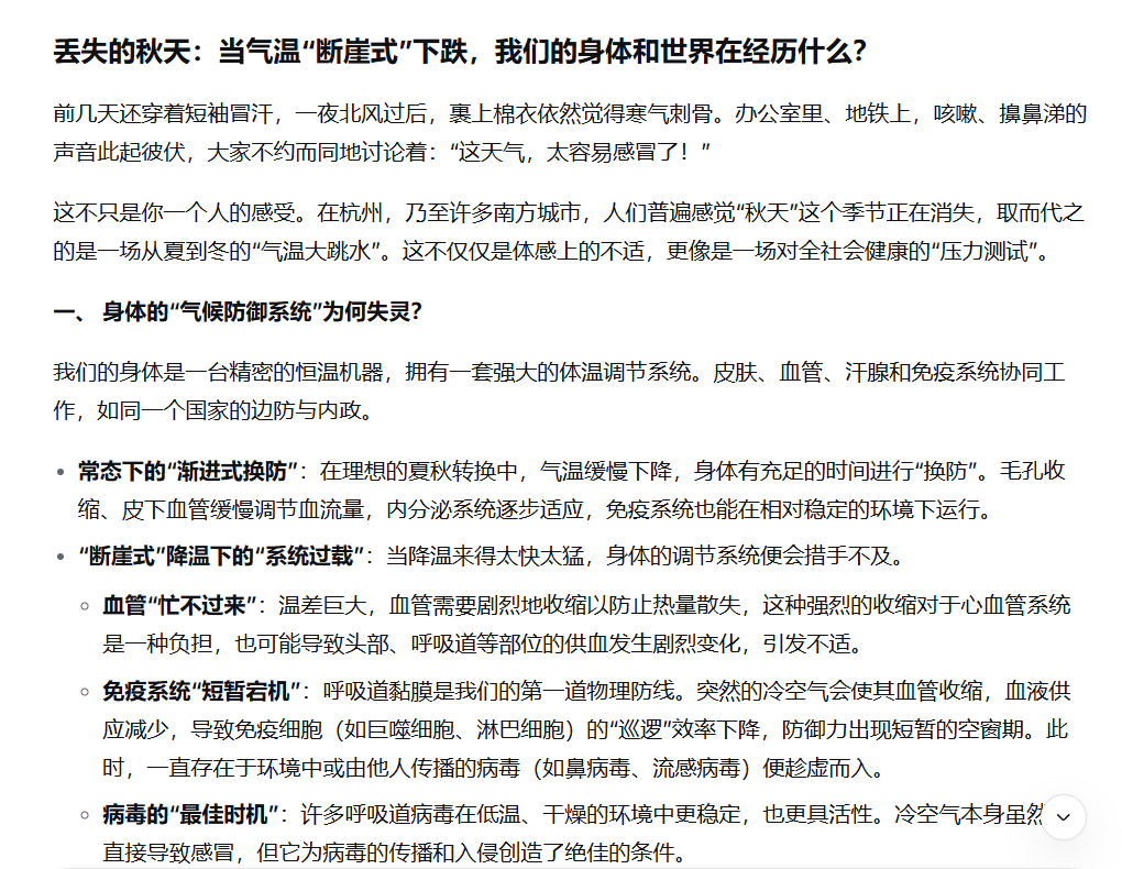 和AI探讨一下,丢失了的秋天对人体健康的影响⬇️
