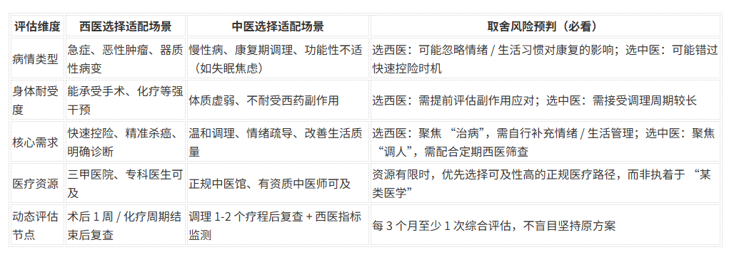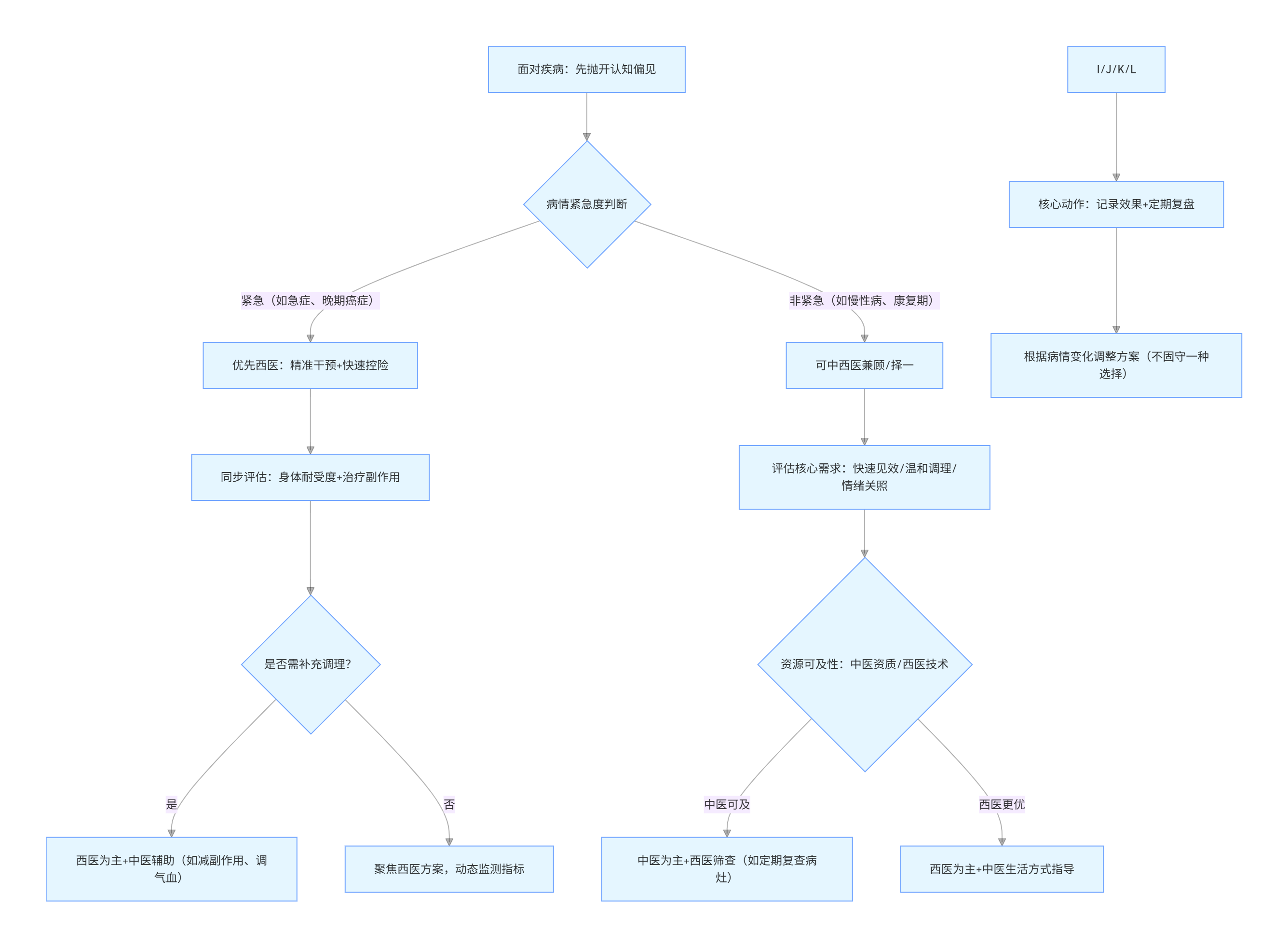 不排斥任何正规医疗路径:西医诊断 + 中医调理、中医问诊 + 西医筛查,都是合理组合; -