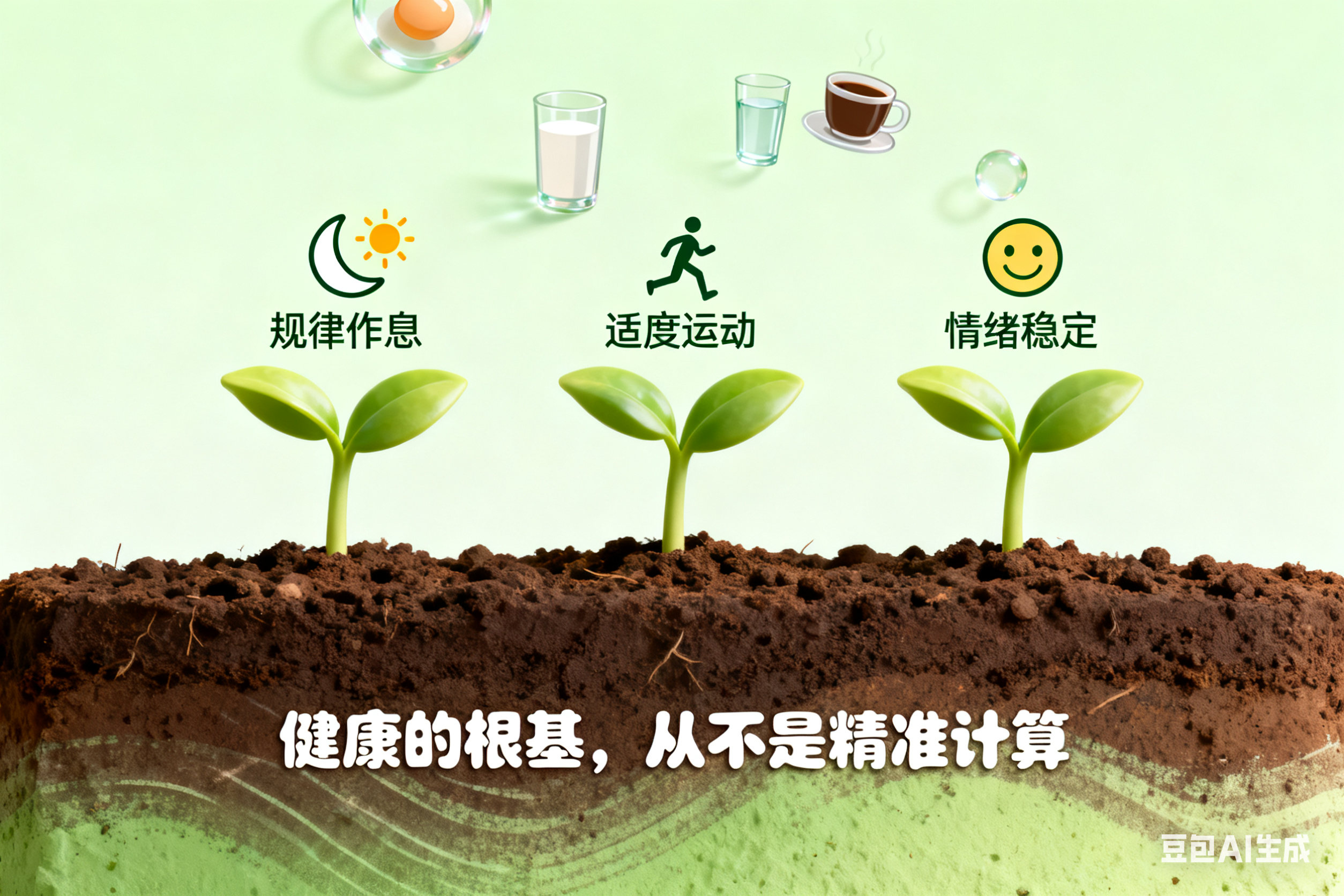 其实,健康从来不是一道 “精准计算题”,而是一场 “生活修行课”。我们不必纠结 “吃几个鸡蛋”,只要做到 “三餐规律、不挑食、不过量”;不必执着 “喝多少水”,只要记住 “口渴就喝、不憋尿”;不必迷信 “某种食物的神奇功效”,只要保持 “均衡多样、顺应体质”。那些真正能支撑我们健康的 “根本”,从来都是那些 “不花哨、不量化” 的底层习惯 —— 就像土壤之于植物,空气之于生命,看似无形,却至关重要。
