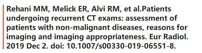 Rehani MM, Yang K, Melick ER, et al. Patients undergoing recurrent CT scans: assessing the magnitude. Eur Radiol. 2019 Dec 2. doi: 10.1007/s00330-019-06523-y.