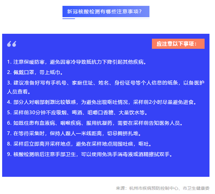 收藏:2021杭州新冠病毒核酸检测综合服务点,要注意什么?