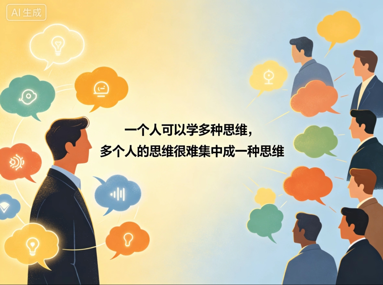 思维这种东西,一个人可以学多种思维,但是多个人的思维很难集中成一种思维