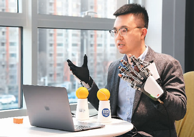 2021年1月5日,富伯(北京)医疗科技有限公司总经理孔令杰通过视频直播的方式展示外骨骼机器手。