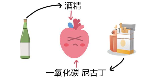 香烟中的有害物质,如「一氧化碳」、「尼古丁」等可进入血液循环系统,损伤血管内壁。