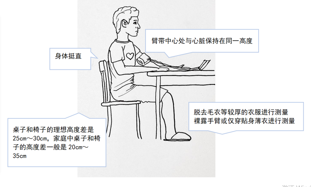 5.手臂裸露放在桌子上,与心脏保持同一水平。