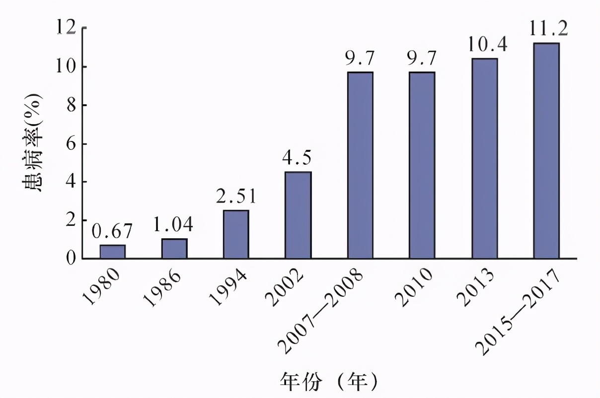 一项荟萃分析显示,在115 988名年龄28~49.4岁(平均年龄43.7岁)的中国居民中,失眠患病率约为15.0%,青少年患病率为16.1%,青年人患病率为20.4%。另一项荟萃分析显示,中国老年人失眠患病率为35.9%。失眠可使心血管病发生风险增加20%,并且发病风险与失眠症状的数量呈正相关。