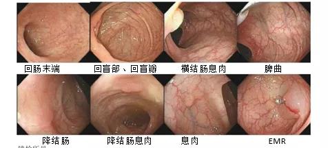 肠镜报告的图片通常选取8张高清图片按退镜顺序依次排列,结肠镜检查部位由里往外依次为回肠末端、阑尾孔、回盲瓣、升结肠、肝曲、横结肠、脾曲、降结肠、乙状结肠、直肠。正常的肠黏膜光滑,色泽红润,粘膜下血管纹理清晰,皱襞完整。