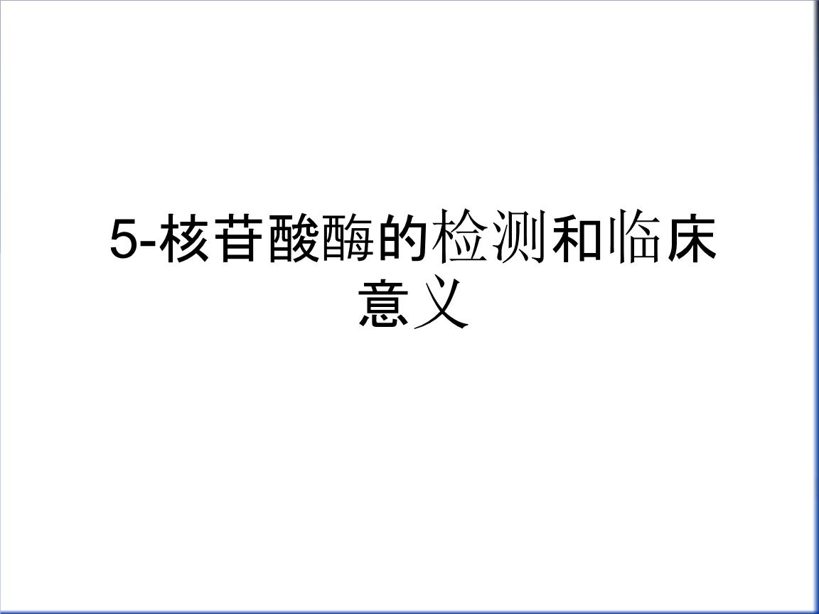 5'-NT 是一种特殊的磷酸单酯水解酶,能特异性地将次黄嘌呤核苷酸水解为次黄苷和磷酸。此酶广泛地分布在人体和动物的组织中,5’-NT经肝细胞膜进入胆汁,随之进入血清中,是检测肝胆疾病的指标之一。肝内外胆管阻塞、肝癌和伴随循环转移的乳房切除术后的病人此酶升高明显。诊断肝胆疾病和肝癌5'-NT 较肝内其它酶类更敏感。