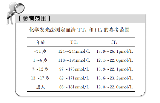 ●TT₄和fT₄减低:甲状腺功能减退症、肾病综合征等。