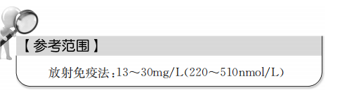 ●TBG增高:甲状腺功能减退症及孕妇、服用避孕药等。