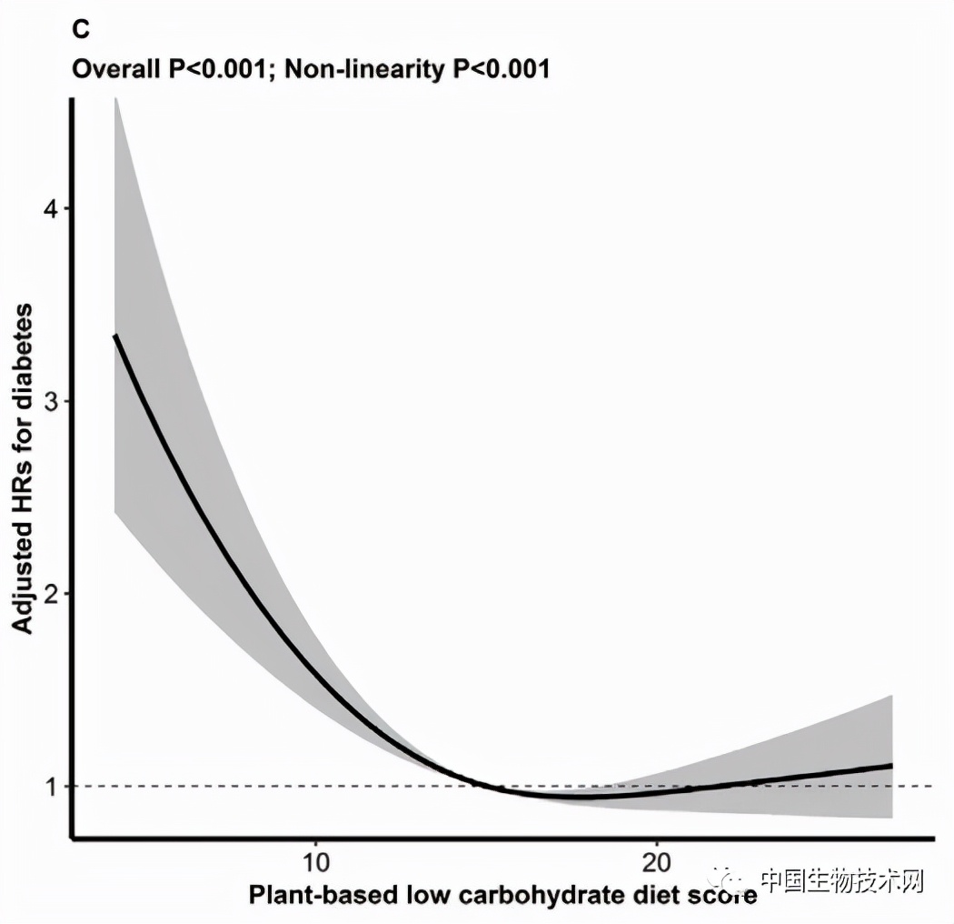 低质量碳水化合物+植物源性蛋白和脂肪的饮食得分与新发糖尿病之间存在反向关联(见下图)。