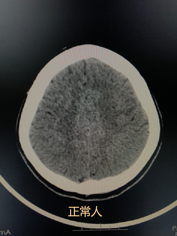 60岁体检女性。可以看到与正常人比,脑沟增宽了