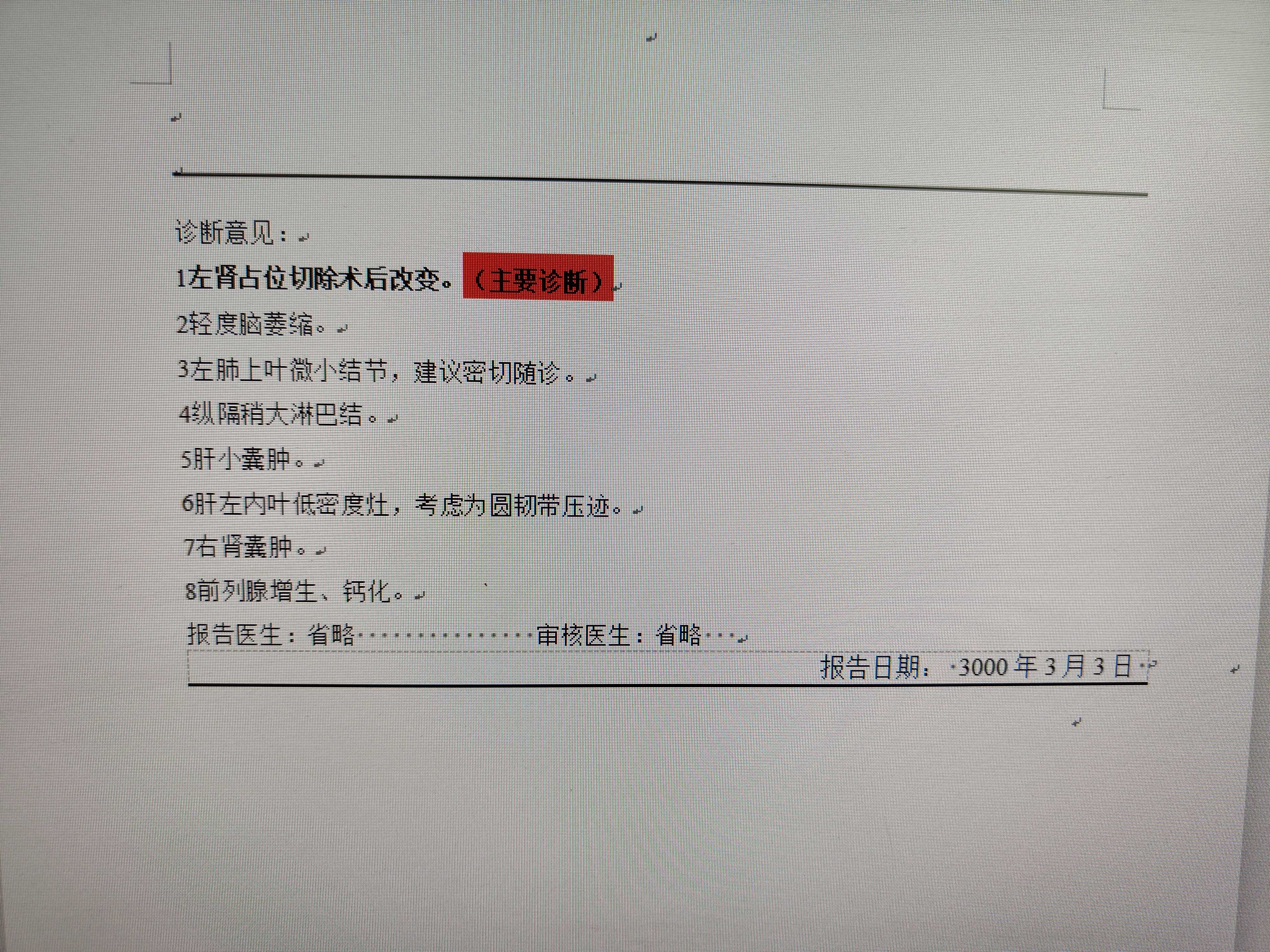 昨天接到一个患者的电话,大致是他说前两天去体检机构做检查,诊断意见1他知道,因为做过手术,后面的有些就看不懂了。他很担心,让我给他看看是不是得做手术啊还是吃吃药,给他们消灭掉,看着闹心。