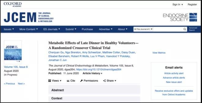 两组人分别在22:00吃晚餐和常规18:00吃晚餐,均给予等热量饮食。随后志愿者均在23点入睡。