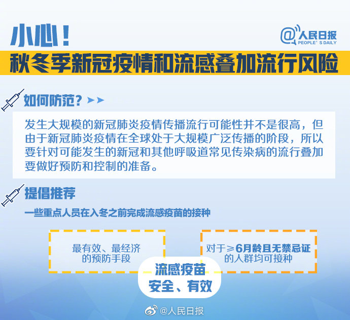日前,中国疾控中心提示秋冬季存在新冠和流感叠加流行风险,要做好预防和控制的准备。接种流感疫苗是预防流感最有效的措施。我国批准上市的流感疫苗有哪几种?哪些人是流感疫苗的重点接种人群?什么时间是最佳接种时机?戳图了解和你有关的流感疫苗