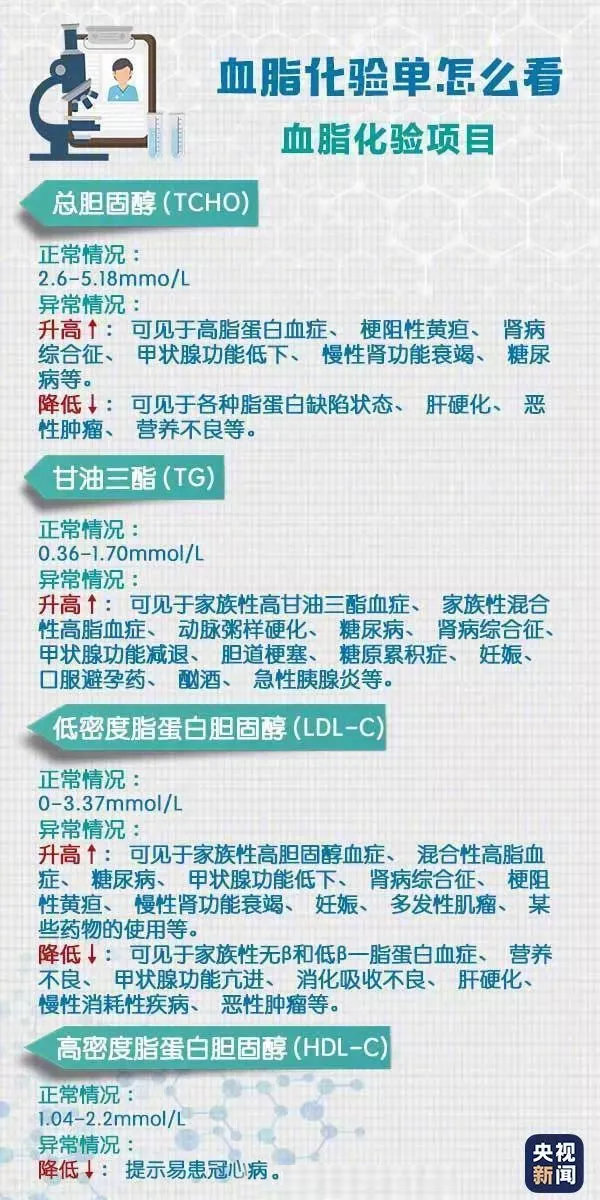 民生视角有调查称,63.6%的受访者害怕看体检报告,其中有1/3是因看不懂体检报告……胆固醇、甘油三酯、胆红素……这些指标是什么意思?出现升高或降低,提示了怎样的身体变化?这组图超实用,建议保存via央视新闻
