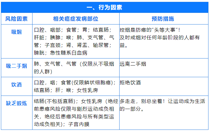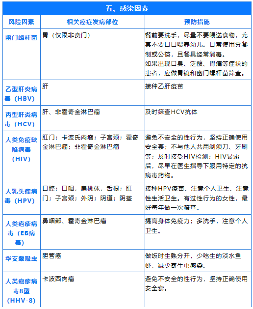 国际公认的23种致癌因素公布!防癌,请收好这5张表格!