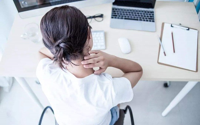 在办公室长期保持端坐姿势,肩部肌肉处于紧张状态,易压迫血管,从而导致血液供给不足,引发疼痛。