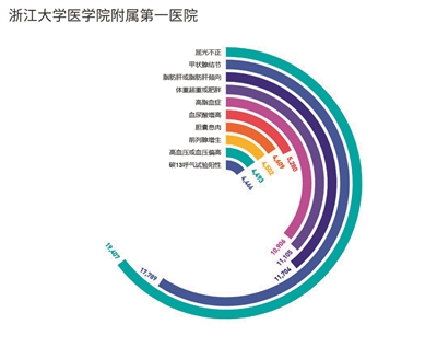 像浙一,今年检出率最高的是屈光不正,浙二、浙人医、省中、市一排名第一的都是甲状腺结节,邵逸夫医院检出率最高的是体重超标,而去浙江医院体检的杭州市民中,高脂血症的检出率最高。
