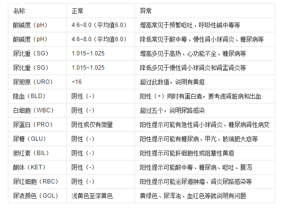 尿常规化验单是分析接受尿常规检查者的身体状况的重要依据。以下以表格来说明各指标的意义: