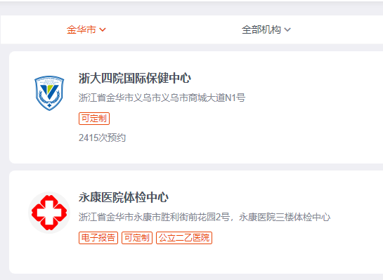 浙江省各市体检中心(温州市、台州市、嘉兴市、金华市)