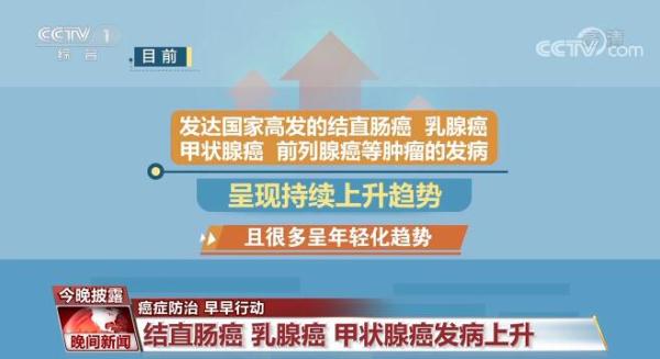 目前,我国传统高发的食管癌、胃癌、肝癌等肿瘤呈现持续下降趋势;发达国家高发的结直肠癌、乳腺癌、甲状腺癌、前列腺癌等肿瘤的发病呈现持续上升趋势,且很多呈年轻化趋势。