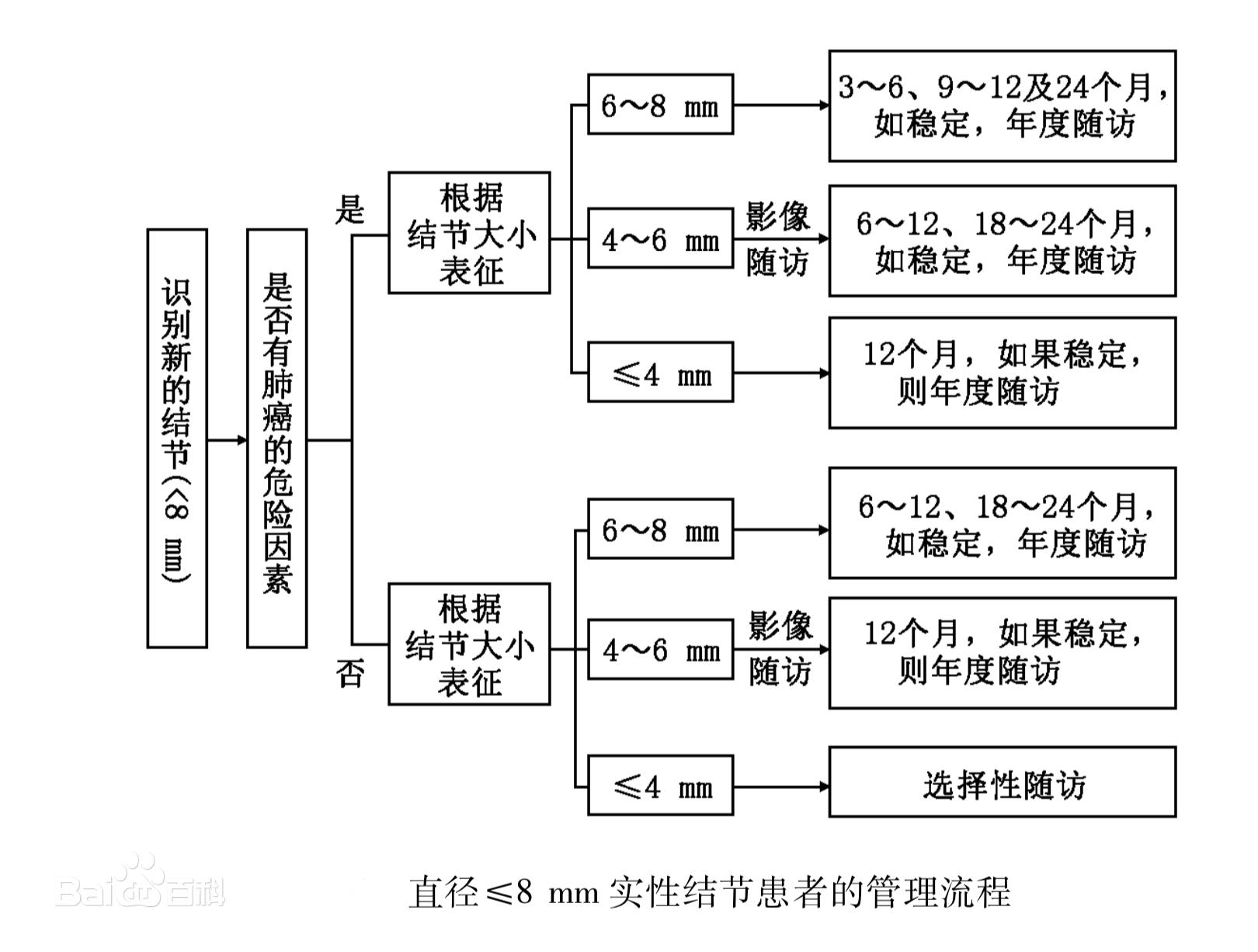 直径≤8mm 实性结节患者的管理流程(一般以定期观察为主)↓