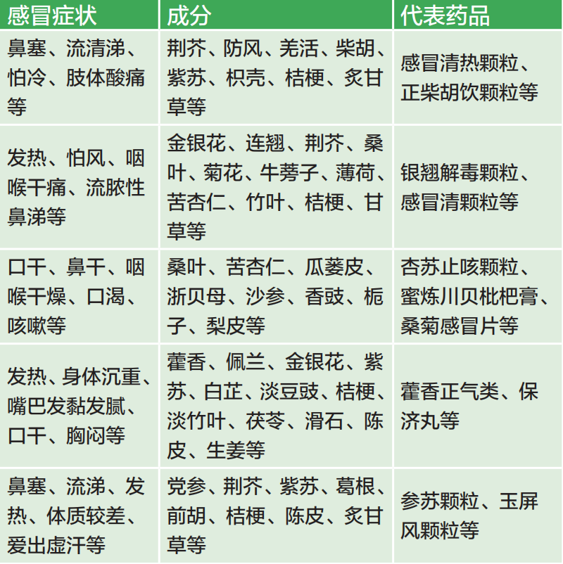 另外,中成药也是目前家庭常备的抗感冒药类型,与西药一样,不同的中药成分治疗不同的感冒症状,也是建议您根据家庭成员感冒常见的症状,选择其中一种备在家中。但是中药涉及辨证治疗,建议您还是在医师、药师指导下进行选药:
