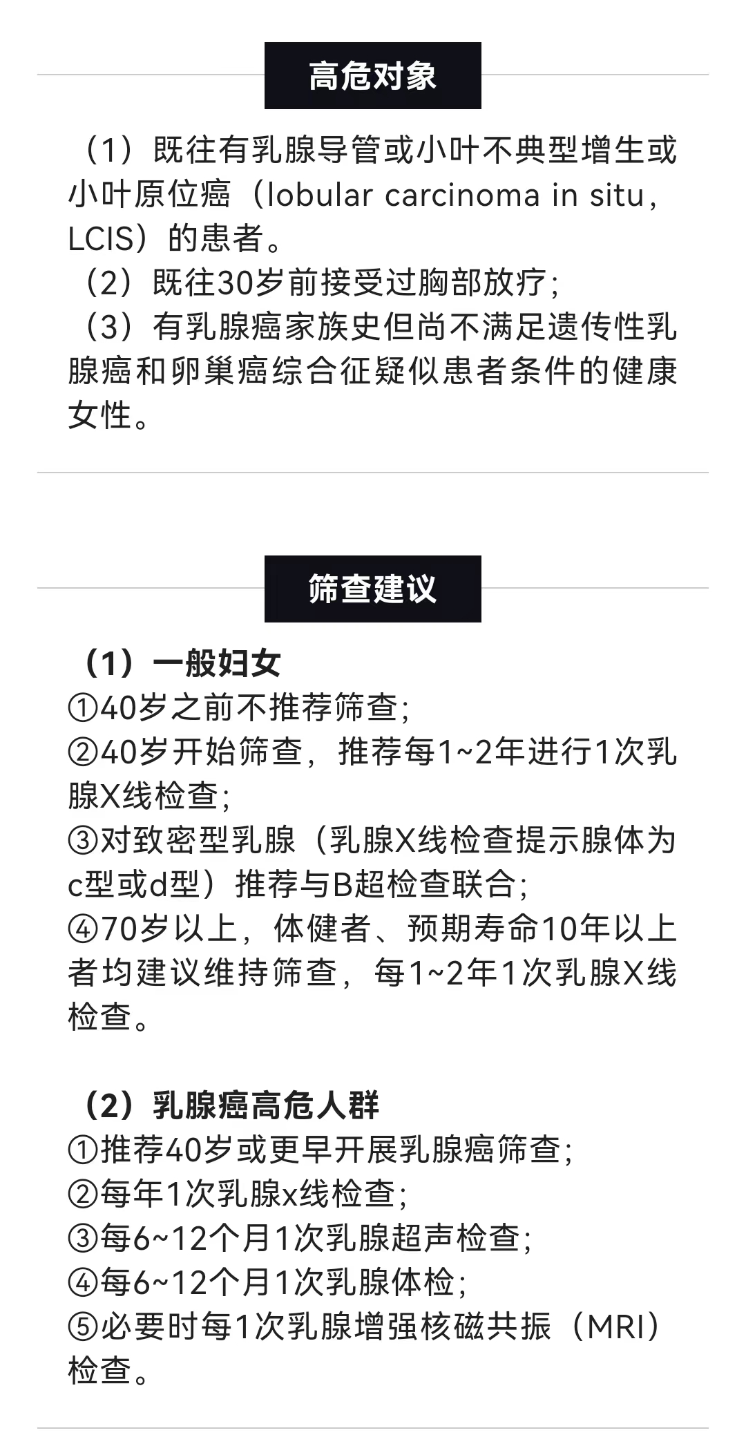 (1)推荐40岁或更早开展乳腺癌筛查;