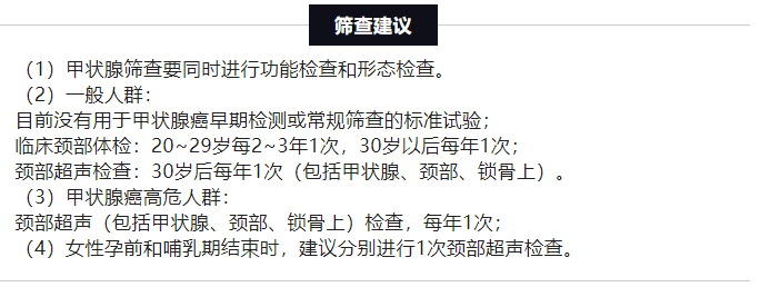 (3)有分化型甲状腺癌(DTC)、甲状腺髓样癌或多发性内分泌腺瘤病2型(MEN2型)、家族性多发性息肉病及某些甲状腺癌综合征(如Cowden综合征、Carney综合征、Werner综合征和Gardner综合征等)的既往史或家族史(有血缘关系)者;