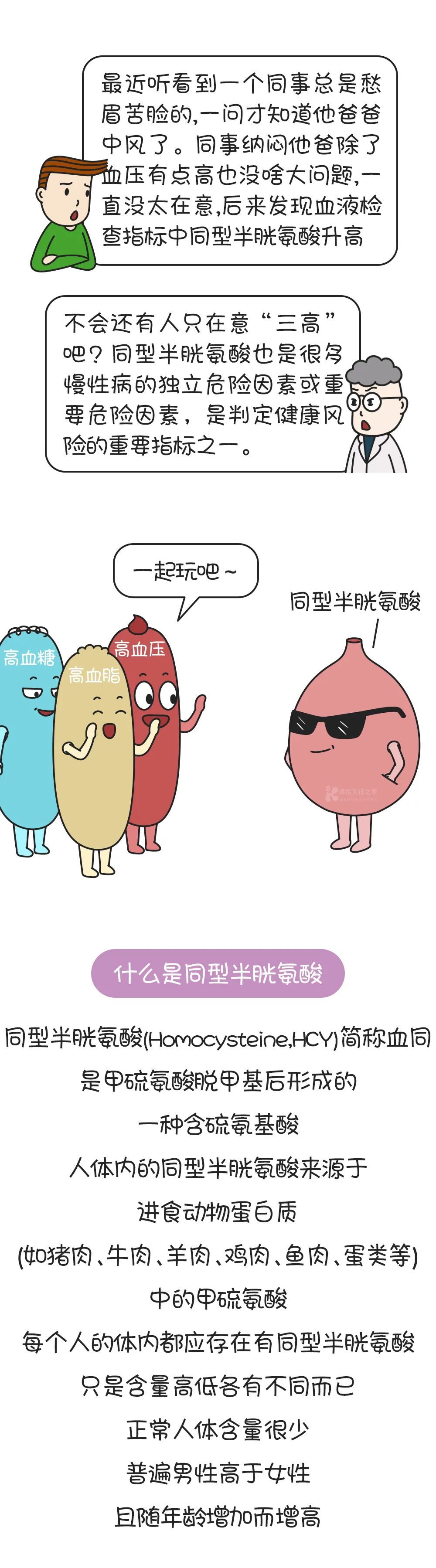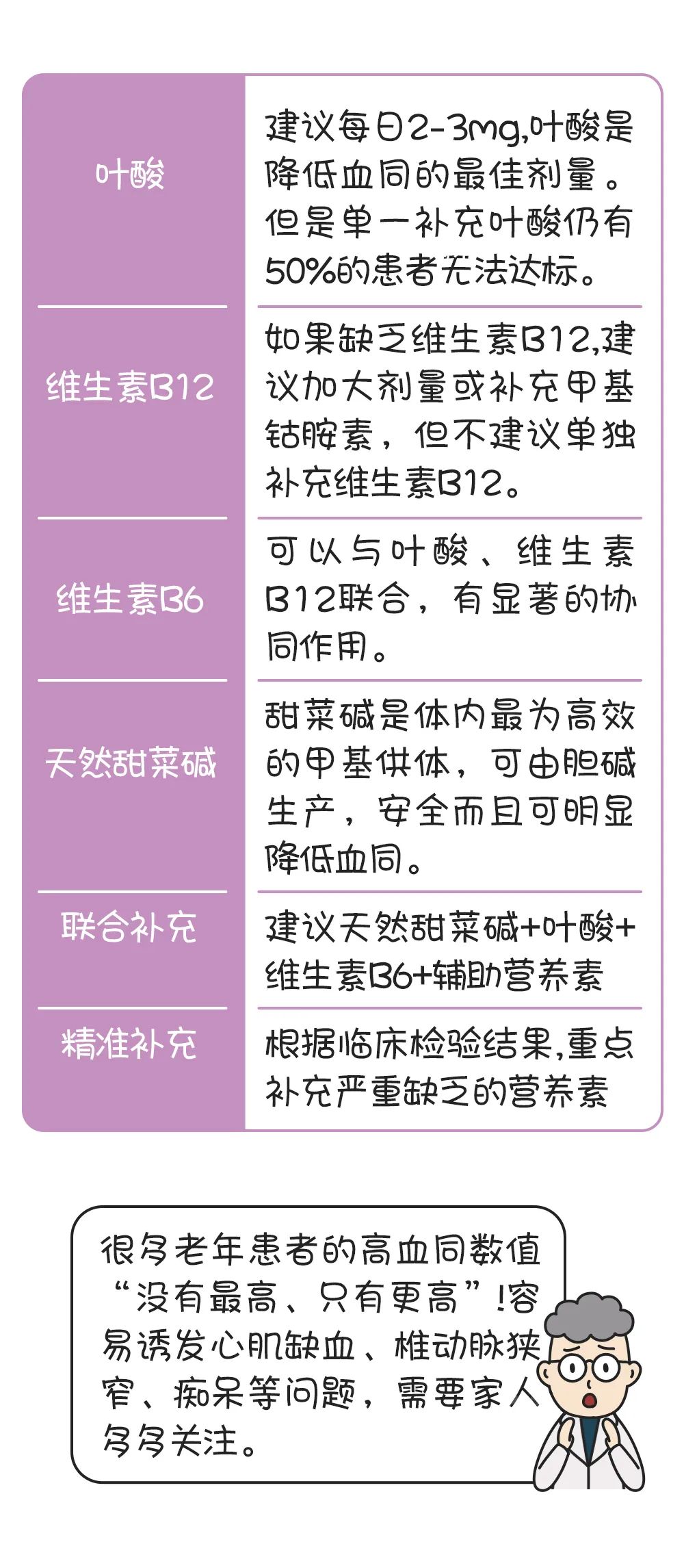2.对于中、重度高同型半胱氨酸血症者,在调整饮食的同时,还要进行“药物”治疗,具体也要看患者情况。