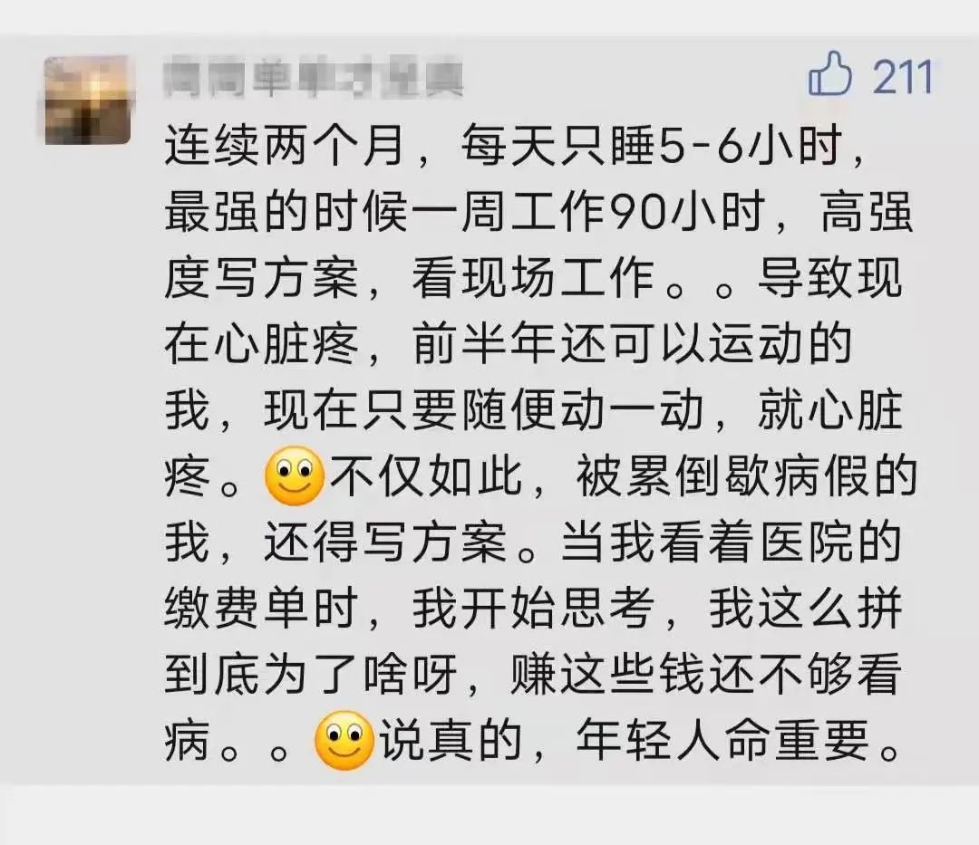 每天只能睡到5-6小时,最忙的时候,一周要工作90小时。不仅要高强度写方案,还要监察现场工作,劳心又劳力。