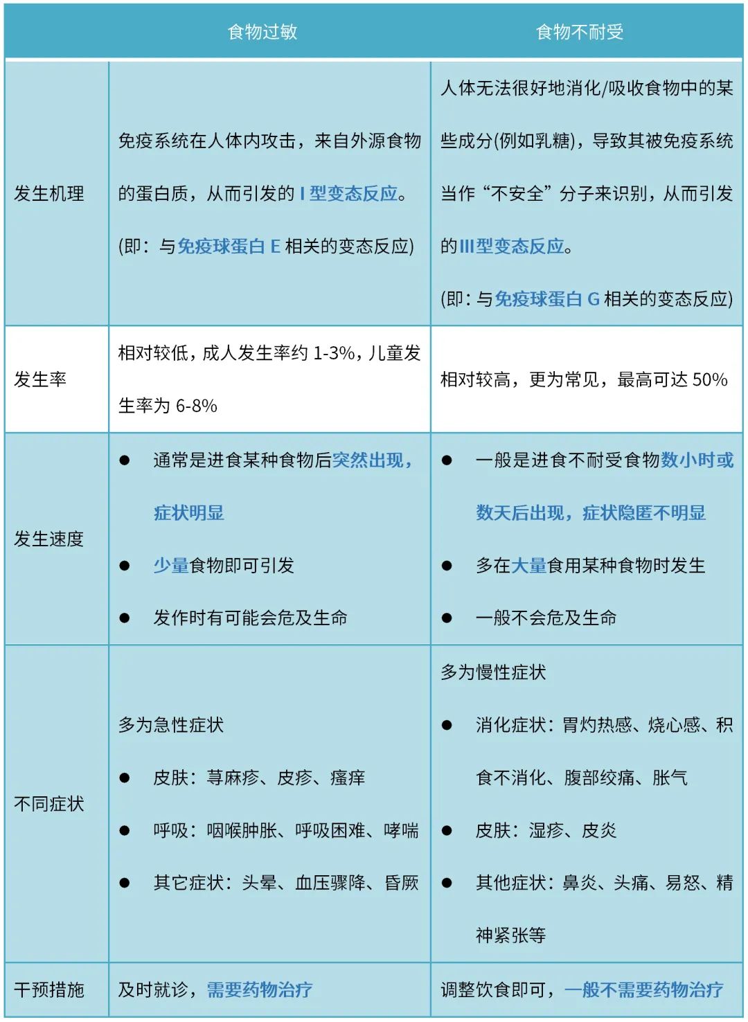 食物急性过敏VS食物不耐受/慢性过敏↓