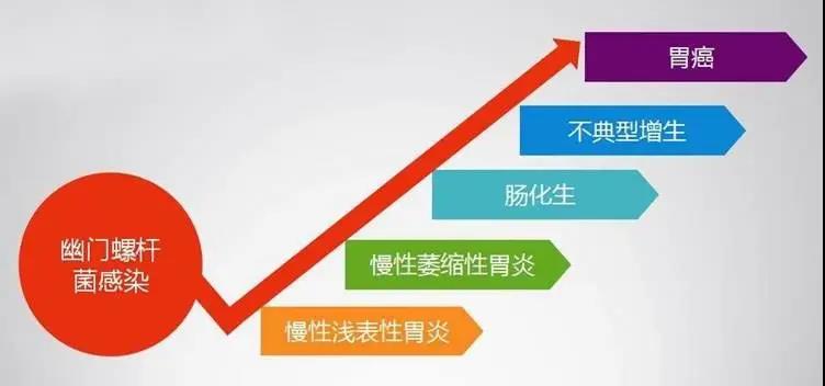 幽门螺杆菌(HP)已被定性为一类致癌因子,HP感染会引起慢性胃炎,进而导致胃粘膜萎缩、肠化这一症状,也已经被公认为胃癌发病的前期病变。