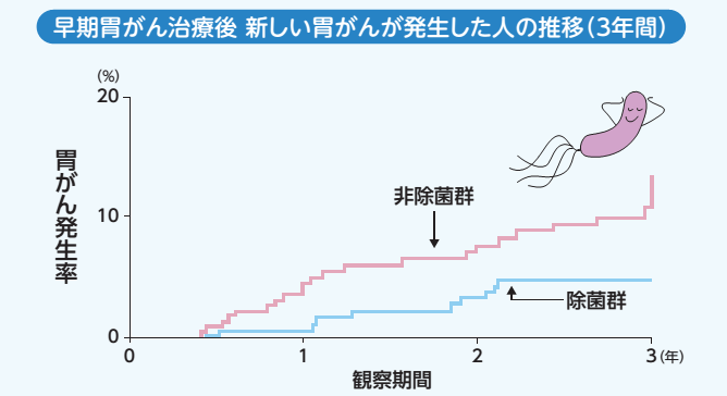 而另一项研究显示:早期胃癌治疗后,根除幽门螺杆菌的患者与未除菌的患者相比,3年内发新发胃癌的几率明显降低,数值相差约三倍。