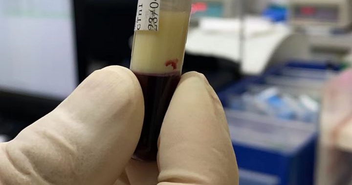 当医生把小万的血抽出来时,发现血液呈白色,似“猪油”状。这让小万及其朋友都惊呆了。