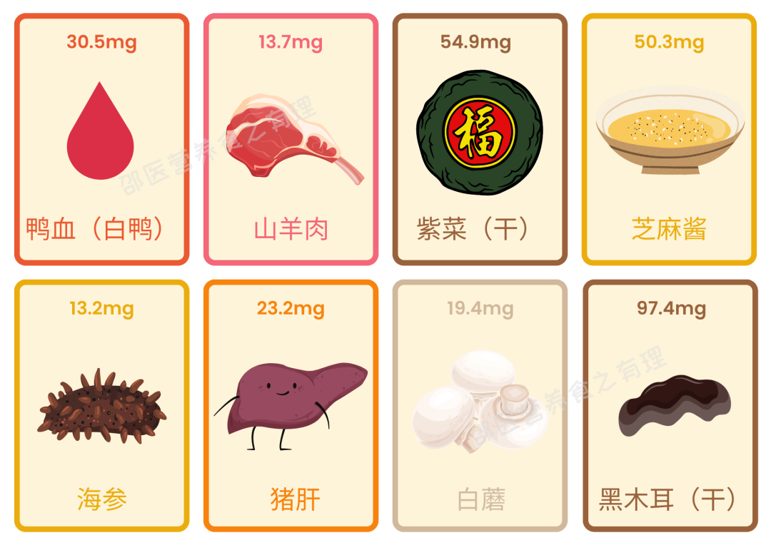 动物性食物中含有的铁元素是血红素铁,人体可以直接吸收,吸收率受膳食影响较少,更适合补铁。