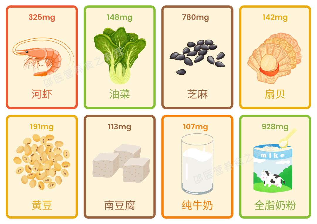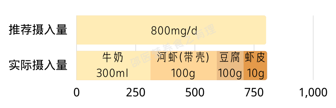 ● 摄入牛奶300ml+河虾(带壳)100g+豆腐100g+虾皮10g即可达到钙的每日推荐摄入量。