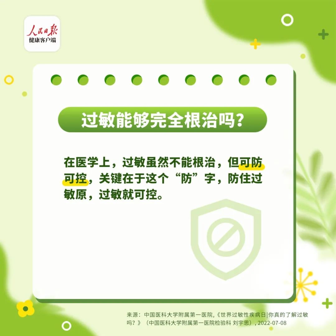 在医学上,过敏虽然不能根治,但可防可控,关键在于这个“防”字,防住过敏原,过敏就可控。③