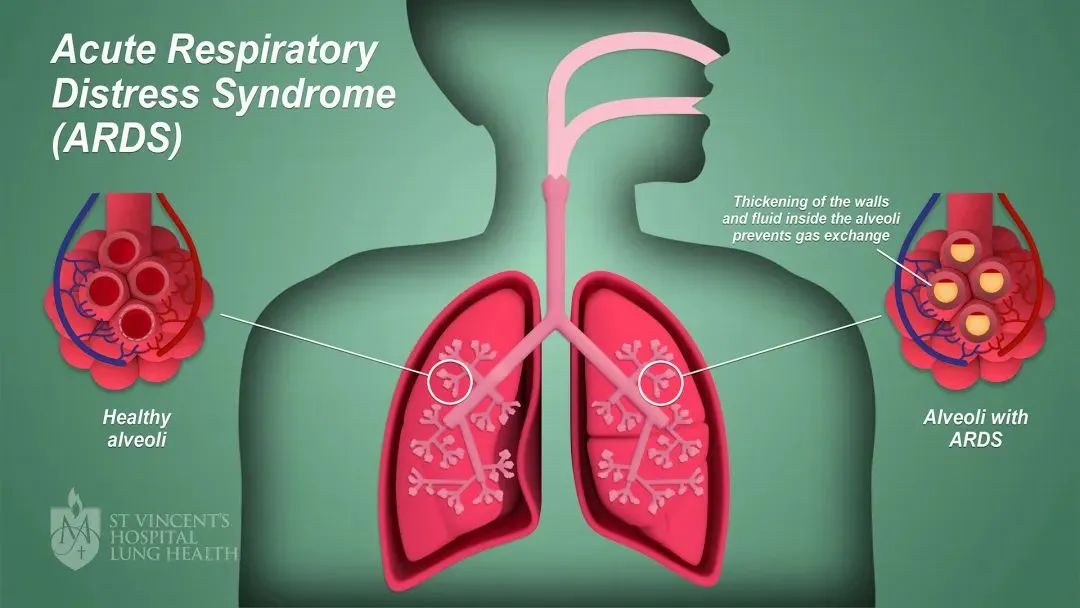 病理学研究显示,ARDS的发病机制主要是冠状病毒攻击肺泡细胞之后诱发的免疫反应;免疫细胞浸润导致肺泡血管内皮结构破坏,使血浆、血浆蛋白和血细胞涌入肺间质和肺泡腔,形成肺水肿;由于肺泡上皮组织被破坏,水肿液大量涌入肺泡内,导致肺泡弥散功能受限,无法行使正常呼吸功能。