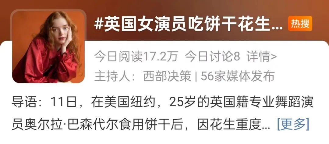 近日,25岁英国籍舞蹈演员奥尔拉·巴森代尔食用饼干后,因花生重度过敏身亡,引发网友关注。