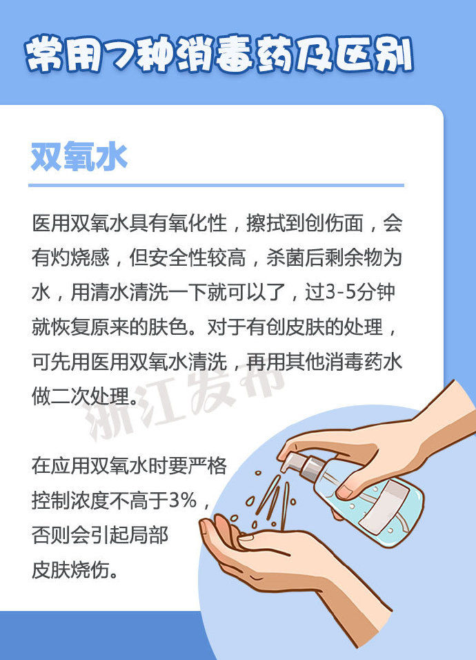 【这几种常用消毒药,你都用对了吗?】民生视角因跌倒、磕碰等情况出现小伤口时,我们往往会用消毒药对伤口进行消毒。75%酒精、碘酒、双氧水……这些都是生活中常见的消毒药,你能分清楚它们的区别吗?不同的药水应该怎么用?