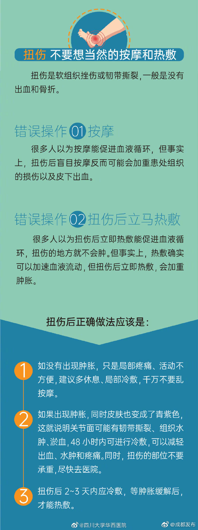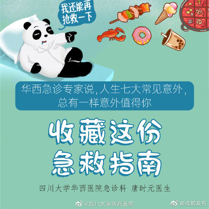 一起长知识啦被烫伤了,用冰直接敷伤口,或者涂点牙膏、酱油、清凉油、猪油;被划伤了,伤口上撒点面粉、香灰止血;脚崴了,管他三七二十一先按摩一下;遇到有人晕倒了,掐下人中就能醒……这些坑自己坑别个的“急救”方法都是错的!下面,四川大学华西医院急诊科的唐时元医生将针对普通人生活中最常见的七大意外,讲一讲究竟怎么才是正确的操作。